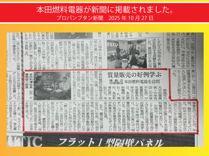 もう一方、LPガスのボンベ販売・レンタル事業ですが、重量ビン売りとしてボンベ販売が多くのユーザーから大絶賛を受けております。