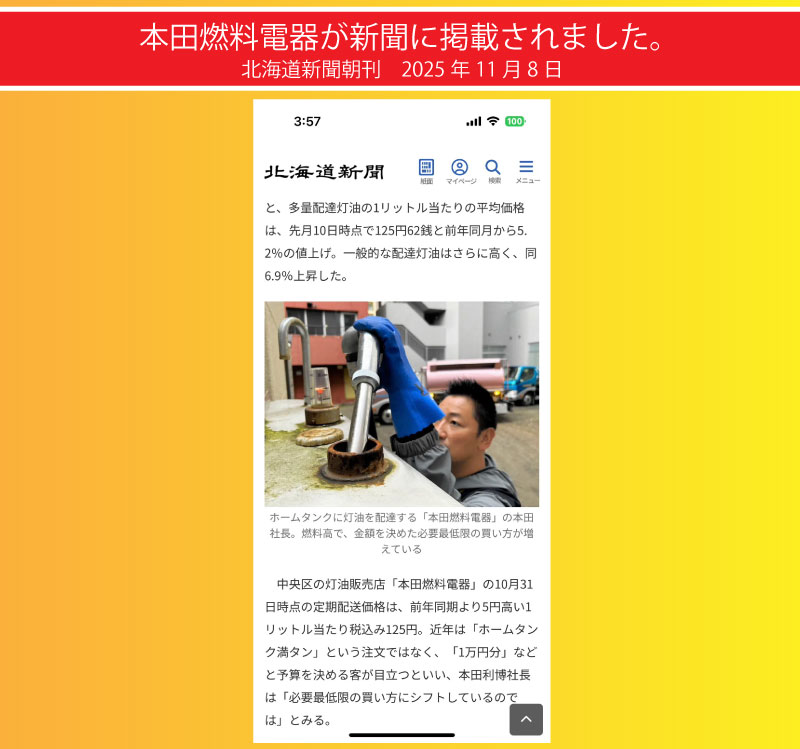 この時期、灯油切れでヘルプのお電話が結構来るんですよ。